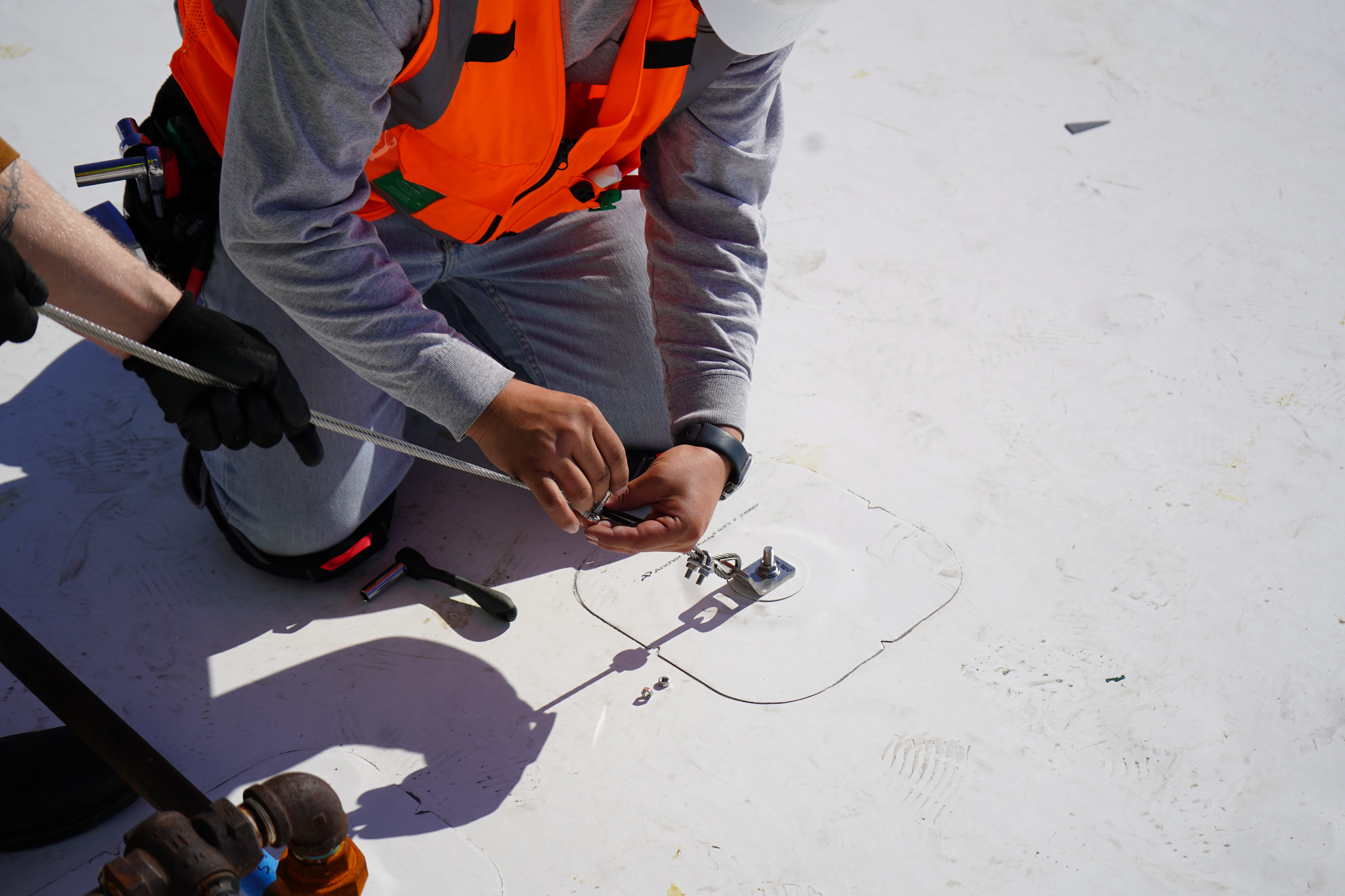 The AP Solution™ HTD 0640 HVAC Tie-Down Kit provides reliable rooftop unit securement to protect against wind, seismic events, and extreme weather. Using Anchor Products’ U-Anchor™ 2000 Series Attachments, the system safely attaches to single-ply, asphalt, or coated roofs without damaging the surface or voiding roof warranties. Each kit includes U-Anchors, stainless steel aircraft cable, brackets, and hardware designed for long-term durability. The system offers exceptional holding strength—up to 3,000 lbs. in tension and 4,000 lbs. in shear—with corrosion-resistant components that ensure performance over time. Key Benefits: Prevents costly roof and equipment damage from winds as low as 50 mph. Quick, easy installation with minimal labor. Stainless steel straps and cables resist corrosion in harsh environments. Compatible with all major roofing manufacturers and HVAC equipment. Can be installed with new systems or retrofitted to existing units. The HTD 0640 provides peace of mind by ensuring your rooftop units remain secure, stable, and compliant with roofing and safety standards.